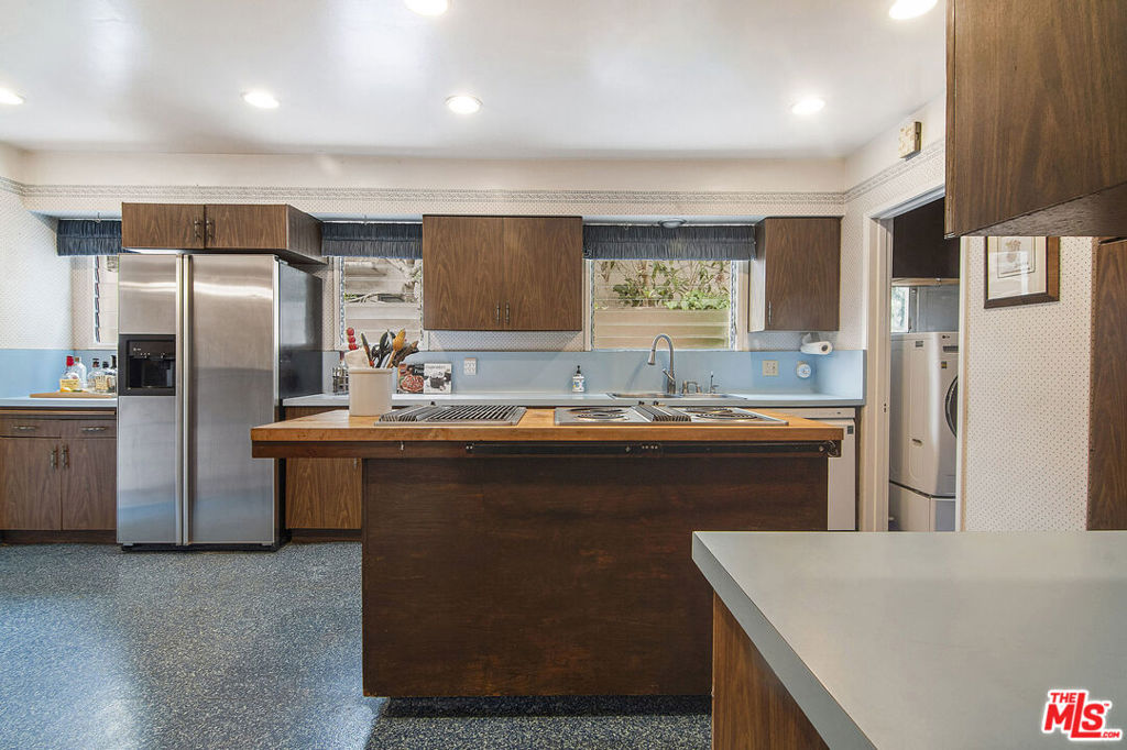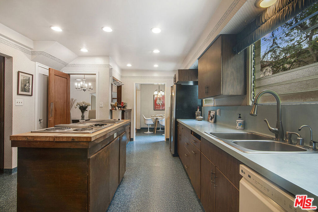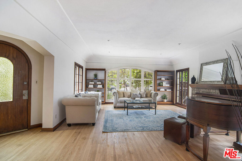 Located on a premier, tree-lined street in the highly sought-after North of Montana neighborhood, this charming Country English-style home offers 3,100 square feet of living space, featuring six bedrooms and four bathrooms. The versatile layout includes two bedrooms and two bathrooms downstairs, with an additional four bedrooms and two bathrooms upstairs ideal for families of all sizes. The bright and spacious living room boasts a dramatic picture window, high coved ceilings, and an oversized Batchelder-tile fireplace. Multiple French-style windows fill the home with natural light from every angle, enhancing its inviting atmosphere. Originally remodeled in the 1960s, the home presents a wonderful opportunity for a new owner to update and personalize it into a dream residence. The large lot (7,525 sq ft) includes a generous backyard and a large, detached garage with room for four cars and alley access, perfect for conversion into an ADU or additional living space, while still maintaining room for a two-car garage. Located within the Franklin Elementary School district, the home is two doors from Georgina Avenue, just moments from Montana Avenue's boutique shops and award-winning restaurants, the Brentwood Country Mart, Palisades scenic hiking trails, bike paths, the bluffs, and16 blocks to Ocean Ave and access to the beach. This is a rare opportunity to own a home in one of Santa Monica's most desirable and prestigious neighborhoods.